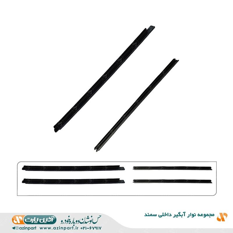 مجموعه نوار آبگیر داخلی سمند یک قطعه لاستیکی/آببند است که در داخل دربهای این خودرو و در مسیر تماس شیشه با بدنه درب نصب میشود تا از نفوذ آب، گرد و غبار و صدا به داخل کابین و درون درب جلوگیری کند.