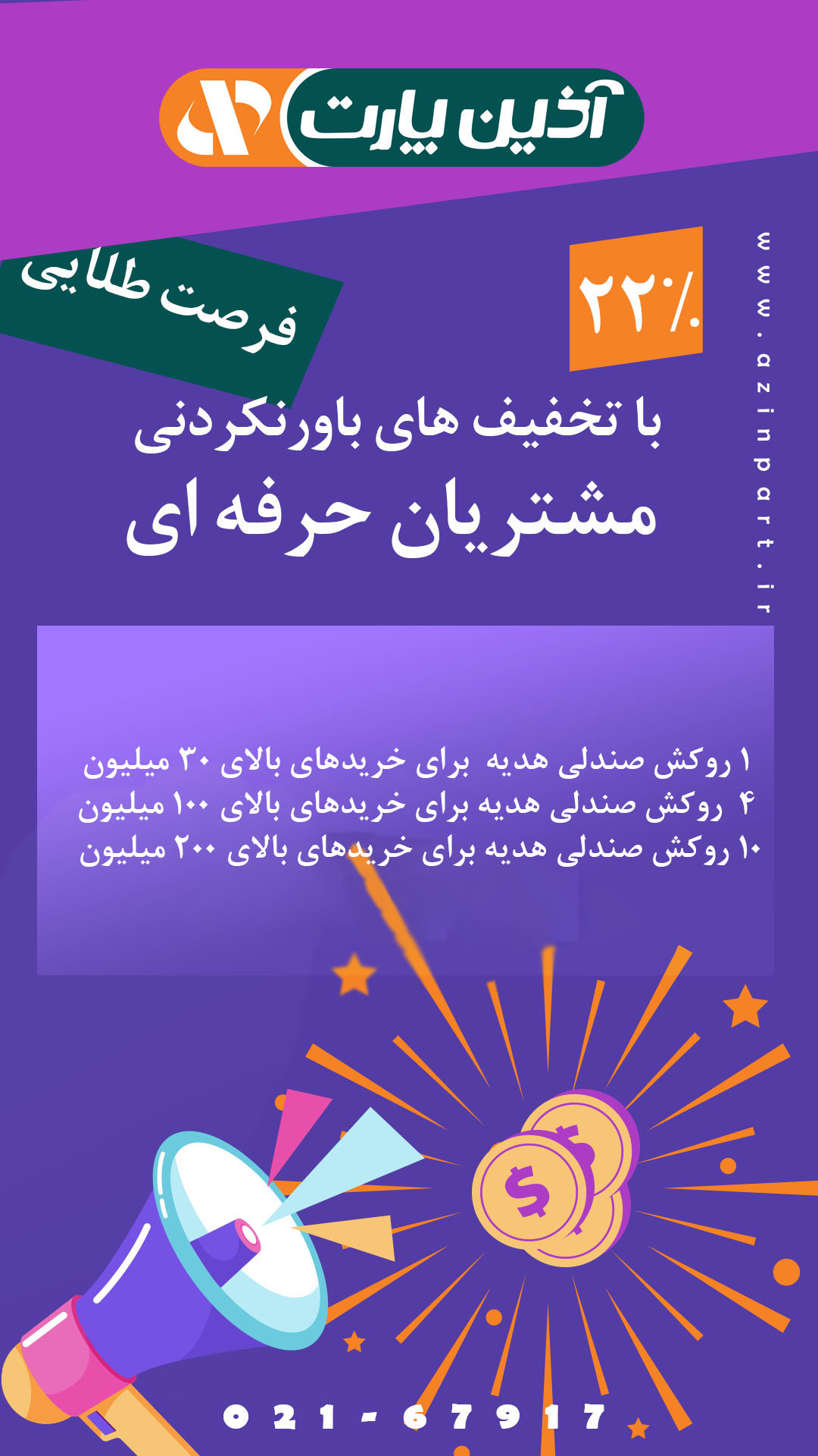 ۱۰۰ نفر اول از اعضای کانال تلگرام آذین پارت نیز از تخفیف 22% بهرهمند خواهند شد.
